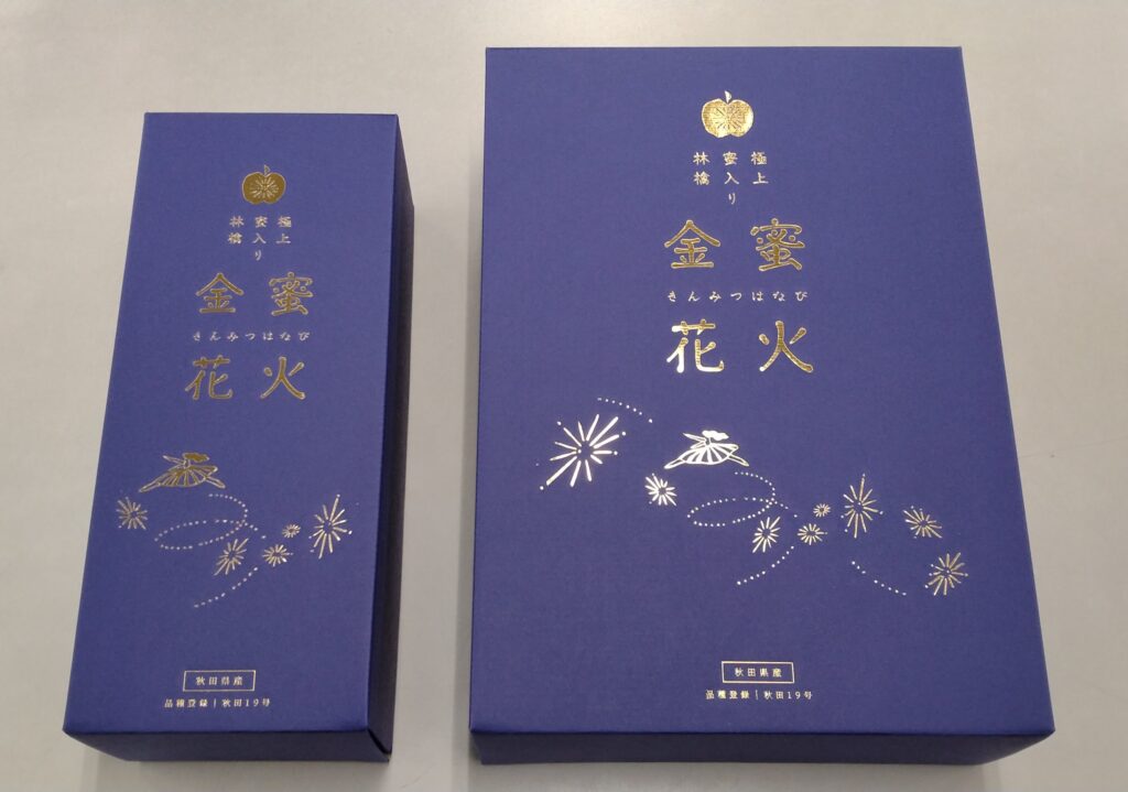 金蜜花火は、化粧箱販売限定商品です。 パックなどで販売されている商品は、全て「香り花火」「秋田19号」となります。